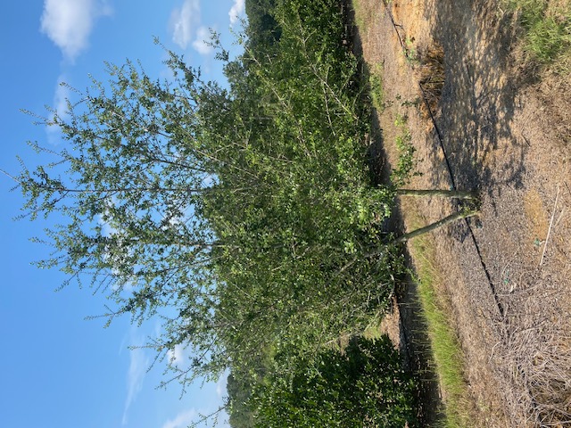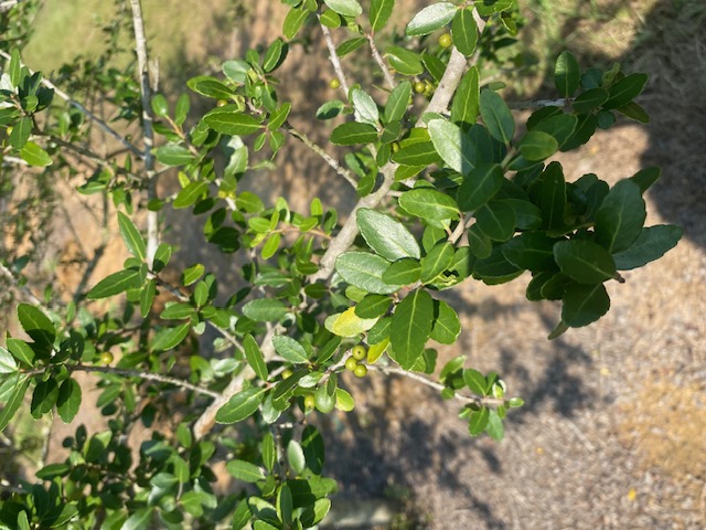 Yaupon with large rounded leaves. Slightly lighter green than shadows. A Green Forest Nursery selection.