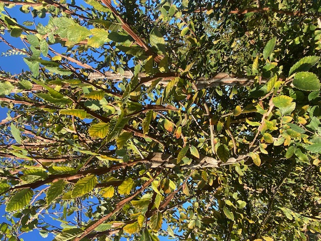 A native North American decidiaus tree that forms a rounded silhouette. It’s leaves are small dark green with a rough texture. Tolerates alkaline and wet soils. Good choice for street plantings or parking lot islands.